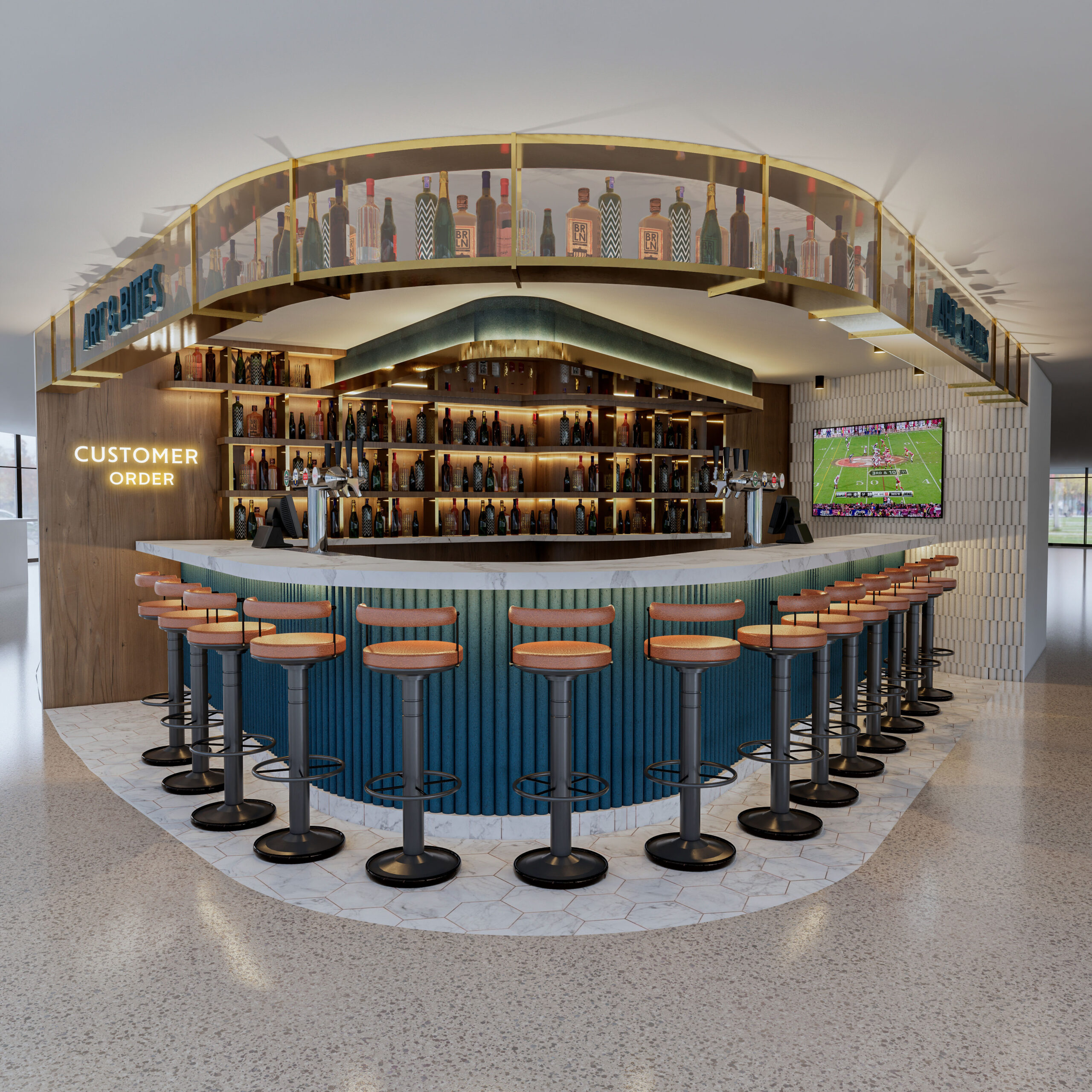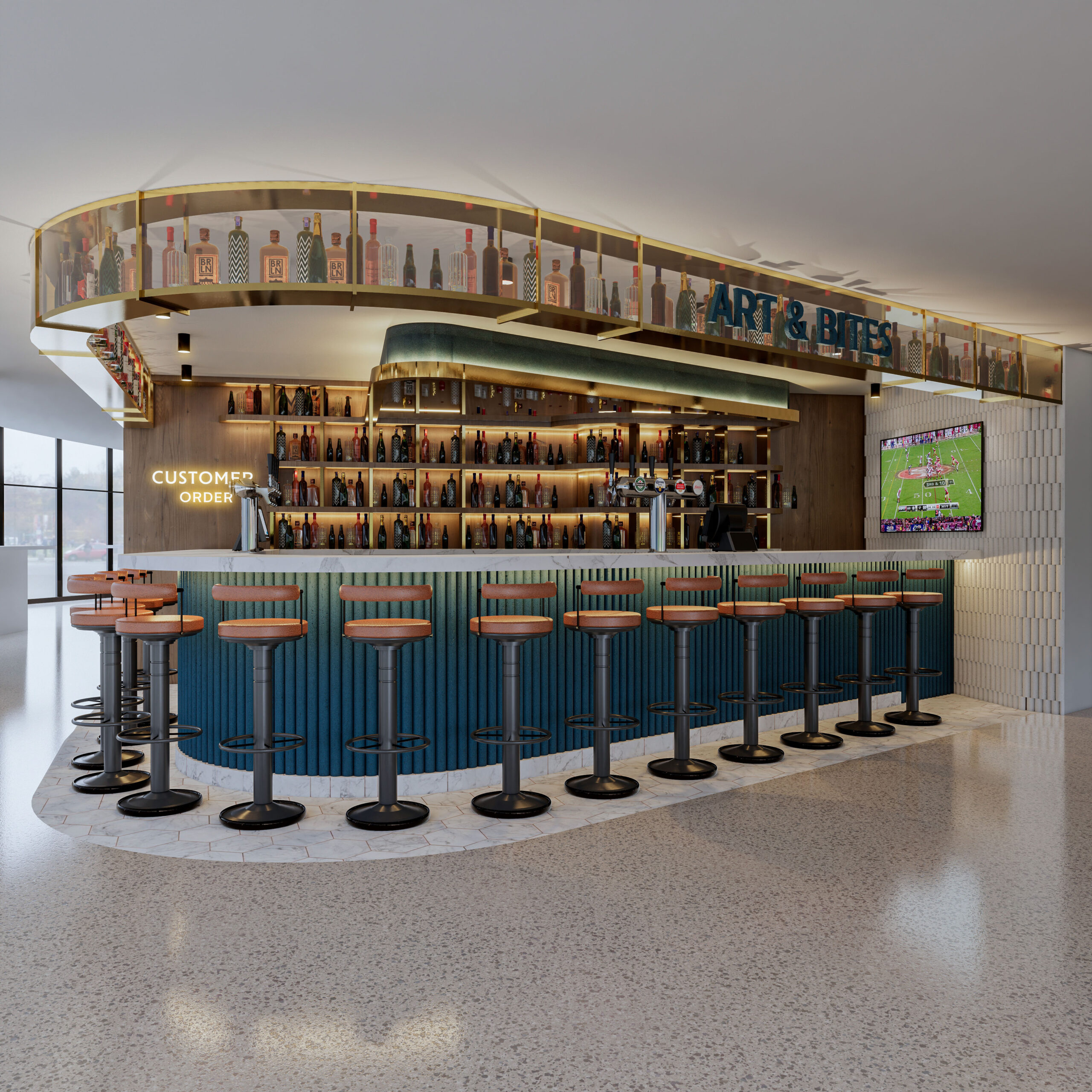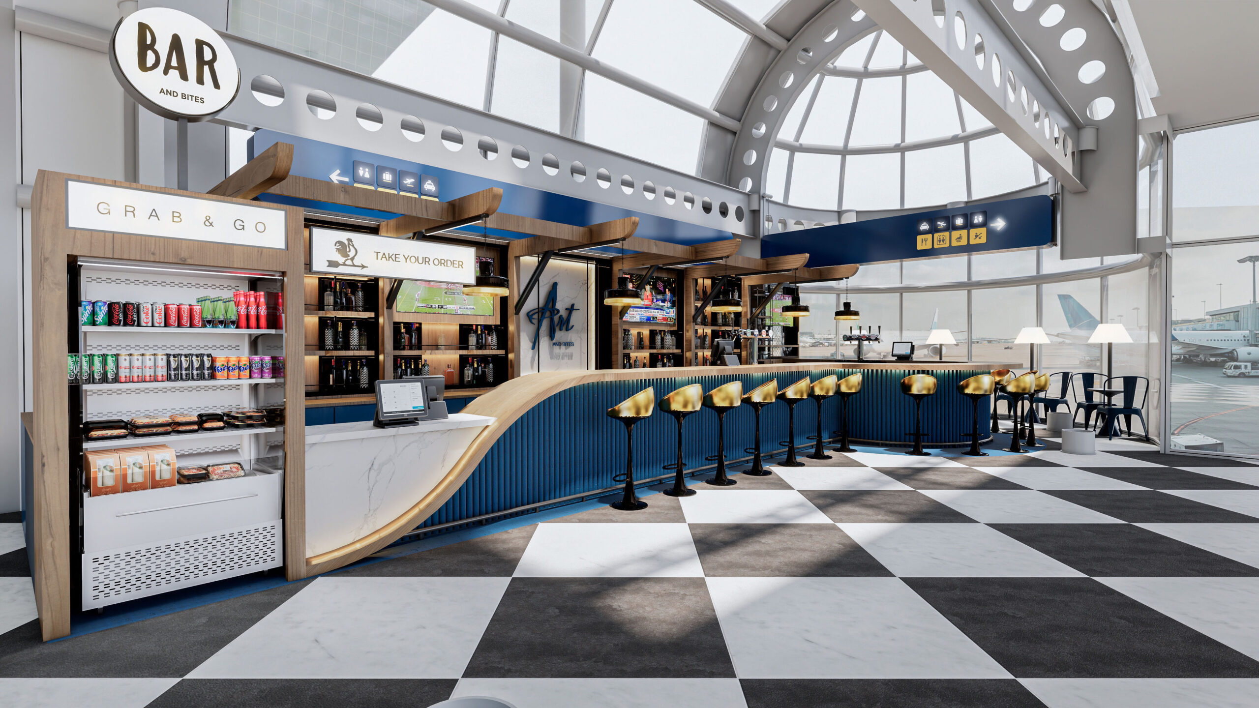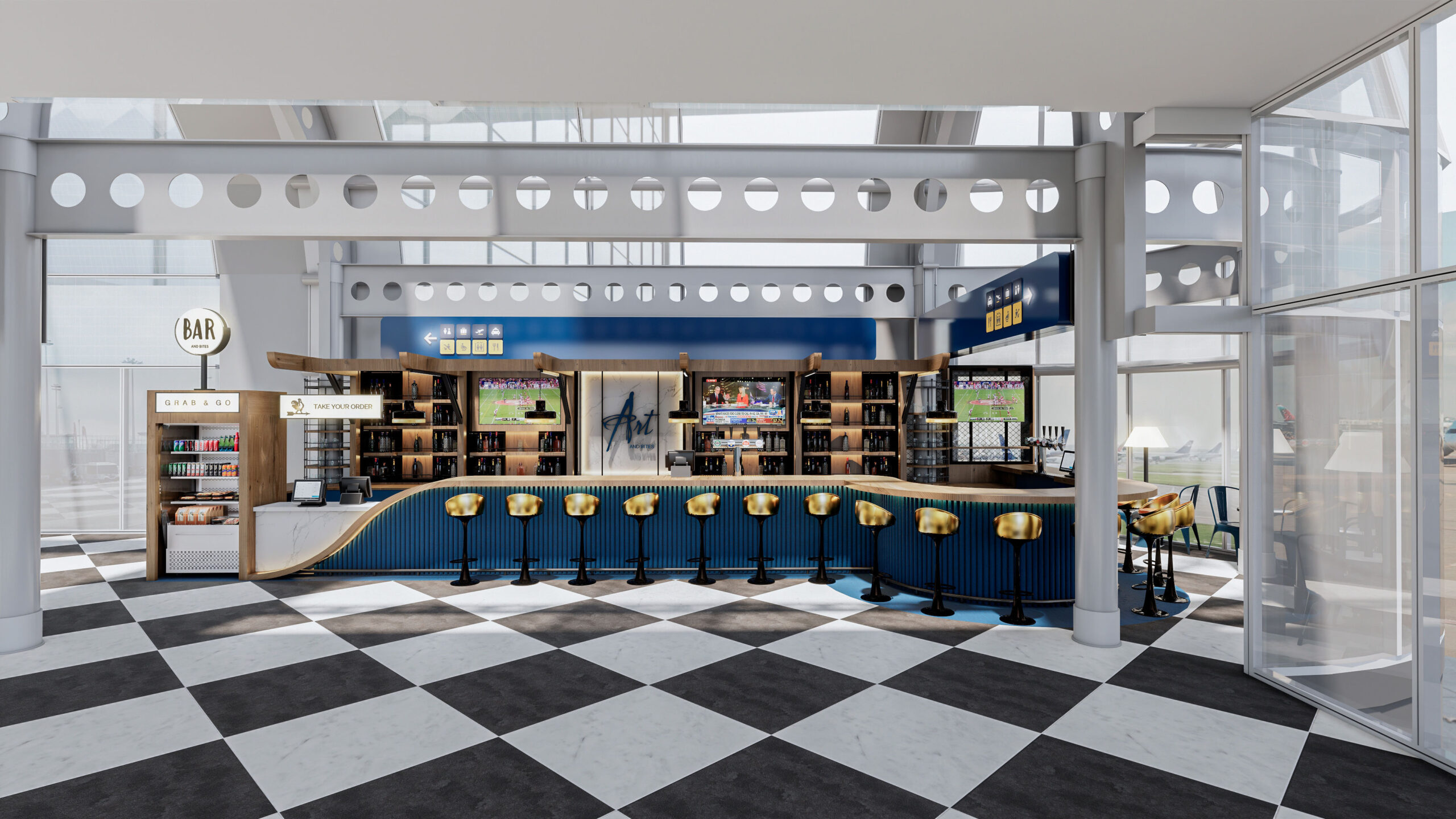 BAR AND BITES - O'HARE AIRPORT Chicago - USA Categoría - Comercio Bar & Bites - O’Hare Airport Chicago - USA Fecha: 2025 Área: 101 m2 Renders: QA Design Ver Antes y Después